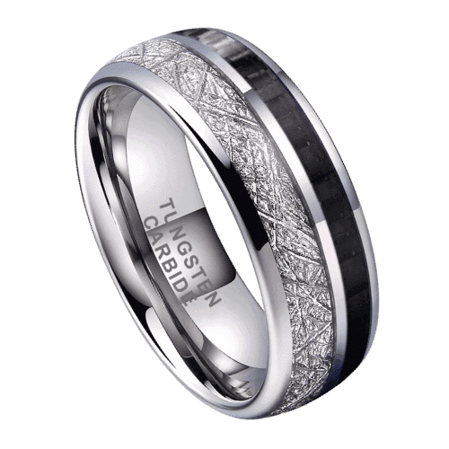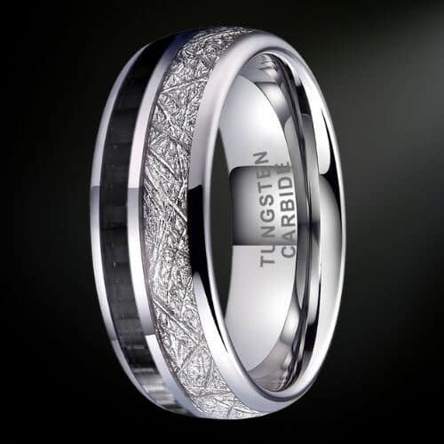 7 avis pour Orbital – Bague en Tungstène pour Homme – Argentée avec Météorite Factice et Fibre de Carbone Noire – 8mm