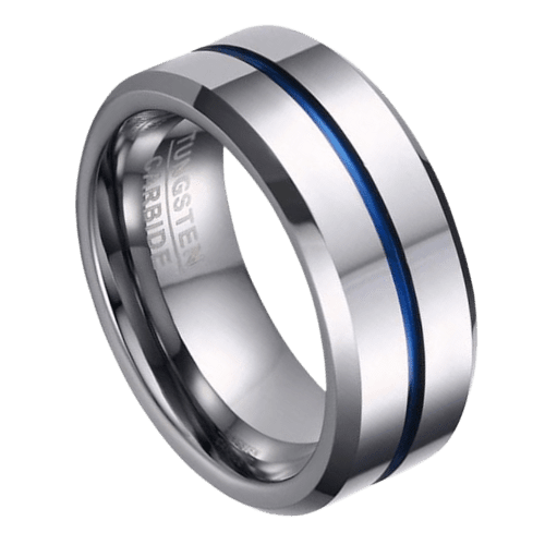 Steadfast est une bague en carbure de tungstène pour homme, mettant en avant une incrustation bleue exquise et une surface argentée polie. L’incrustation bleue évoque un ruisseau serpentant à travers le cœur de la bague. Les bords biseautés argentés ajoutent une touche de classe et d’originalité au design de cette bague masculine.