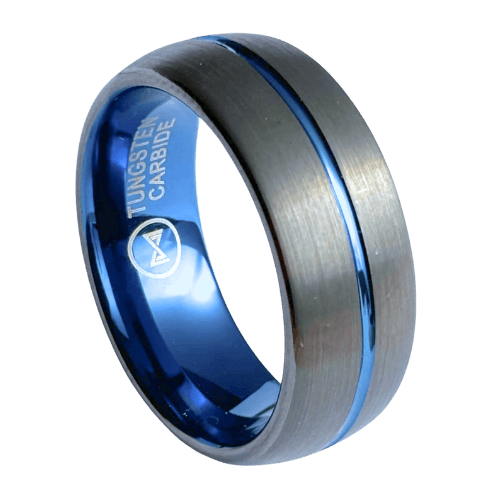 Flux- Bague en tungstène pour homme – Gris bronze avec bande bleue pour lui 8 mm